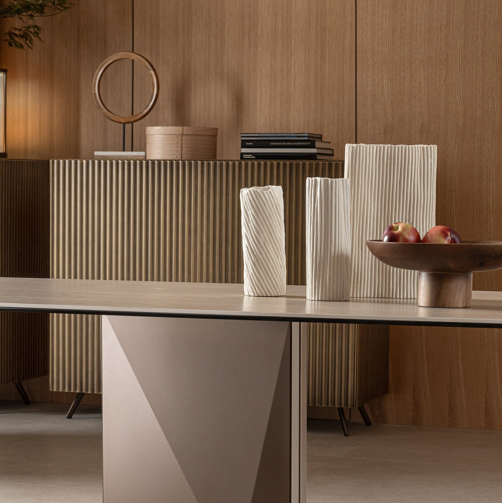 - Descrizione: Vasi in porcellana paperclay in dialogo con interni contemporanei, tra luci soffuse e texture materiche.