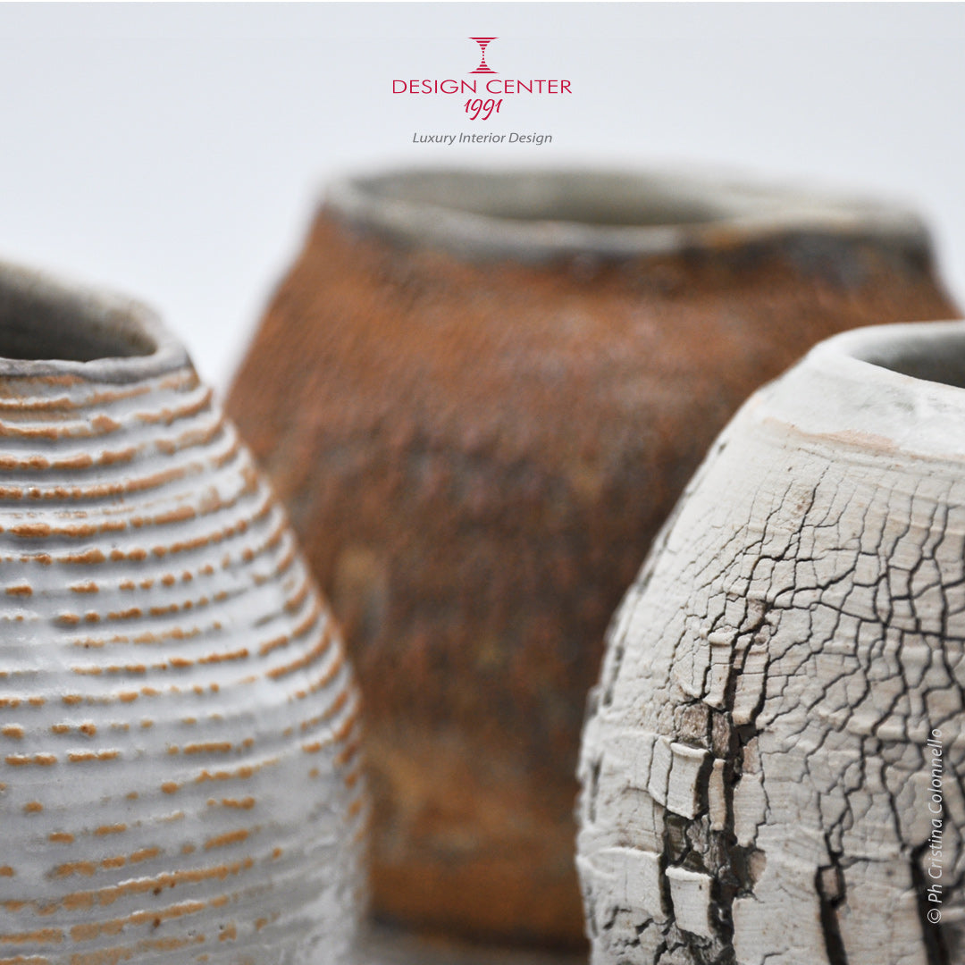 Nei vasi della collezione Paesaggio sotto la luna purezza e ruvidità si intrecciano, trasformando la fragilità della materia in eleganza scultorea.